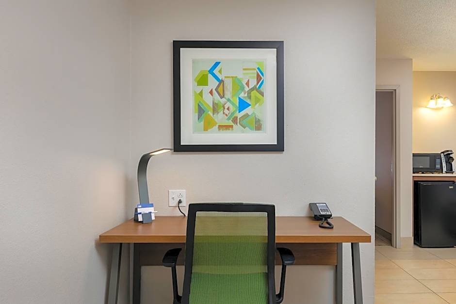 This suite features a microwave, refrigerator, and cable TV. A seating area is provided, as is a private bathroom.